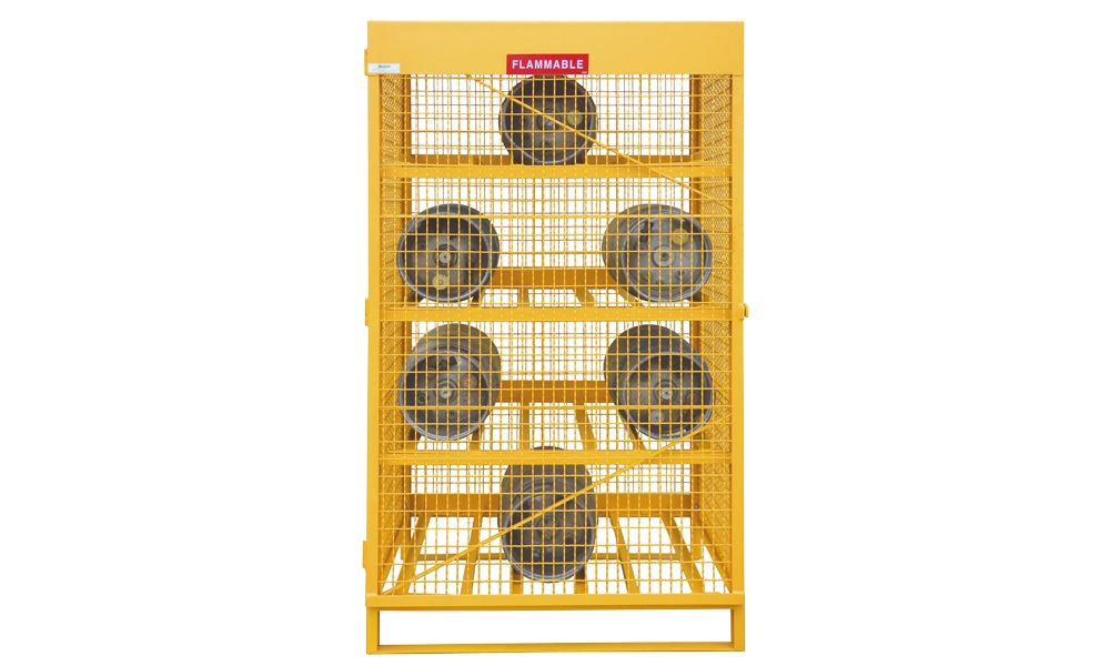 We designed our cylinder storage cabinets to safely hold flammable or high-pressure gas cylinders in fixed locations. Each cabinet provides a stable, enclosed frame that prevents tipping, unauthorized access, or exposure to direct sunlight and open flames. The doors lock tightly to restrict access, and expanded metal panels allow for proper airflow. We also offer multiple sizes and layout options.