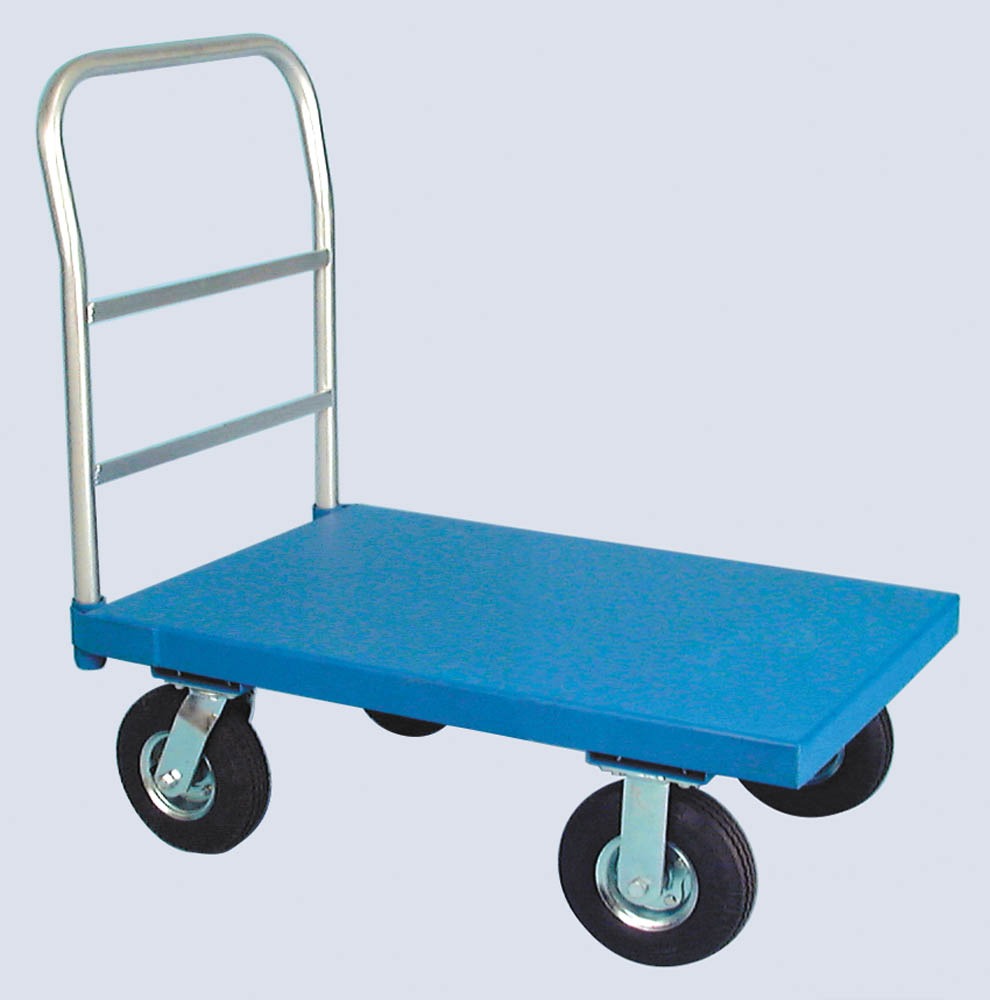 These heavy-duty platform trucks come equipped with a choice of casters: 5” polyurethane, or 6” moldon rubber, or 8” pneumatic tires that roll easily across rough terrain. Their platforms range in 1000# or 2000# capacities (depending on the casters selected) for handling bulky equipment, boxed materials, and so much more.