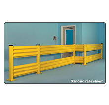 Our extra heavy-duty welded rail systems deliver maximum protection for high-traffic or high-traffic areas. These units come fully welded for maximum strength and fast installation. They work especially well in distribution centers, loading zones, and around in-plant offices, along with building inside industrial structures.
