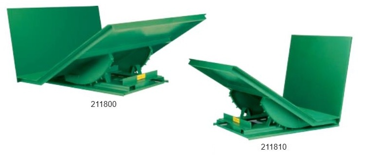 Tapered front self dumping hopper with special low clearance outrigger base and heavy duty 3-way entry fork tubes.